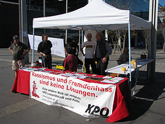 - Der Info-Stand von KPÖ & PolDi beim Aktionstag "Rassismusfreie ZoneN" 2011 am Praterstern. Foto: (c) Wladimir Fried