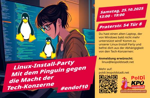 Wann: Am Samstag 25. Oktober 2025, 13:00 bis 19:00 in der Praterstr. 54, Bitte um kurze vorherige Anmeldung. bei linux@leopoldstadt.net